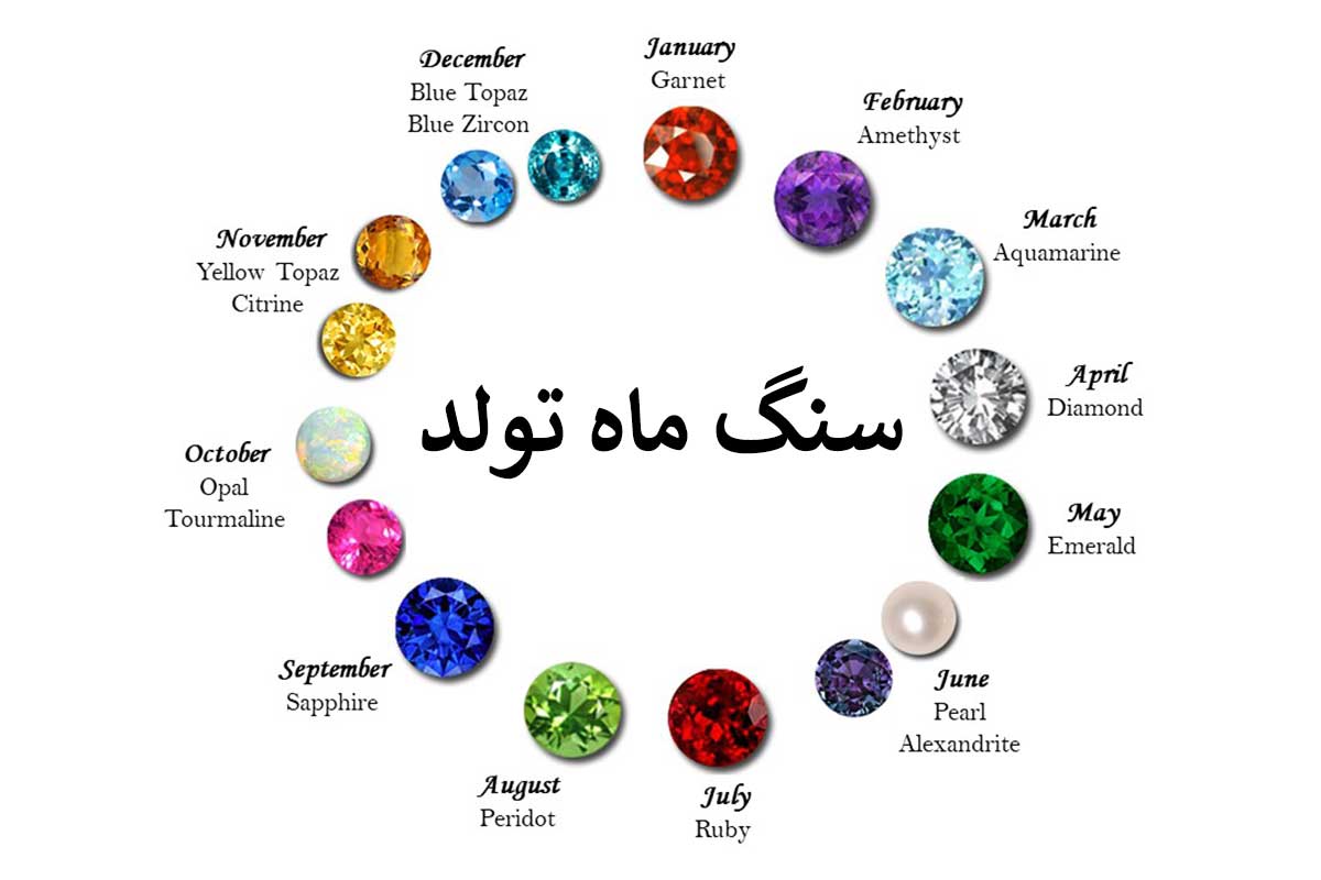 در ادامه سنگهای مرتبط با هر ماه تولد و توضیحات مفصل در مورد ویژگیها و خواص آنها ارائه شده است: